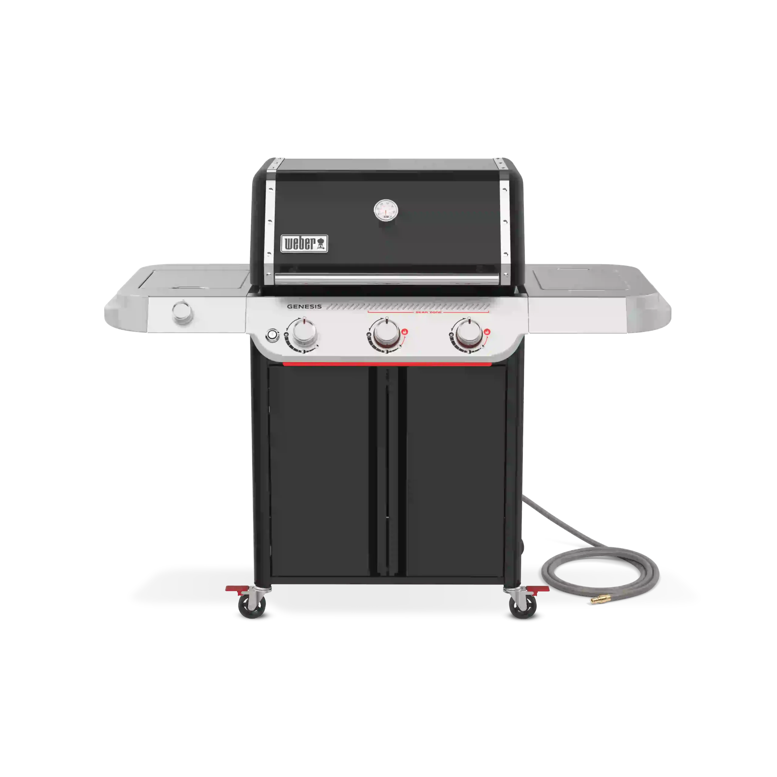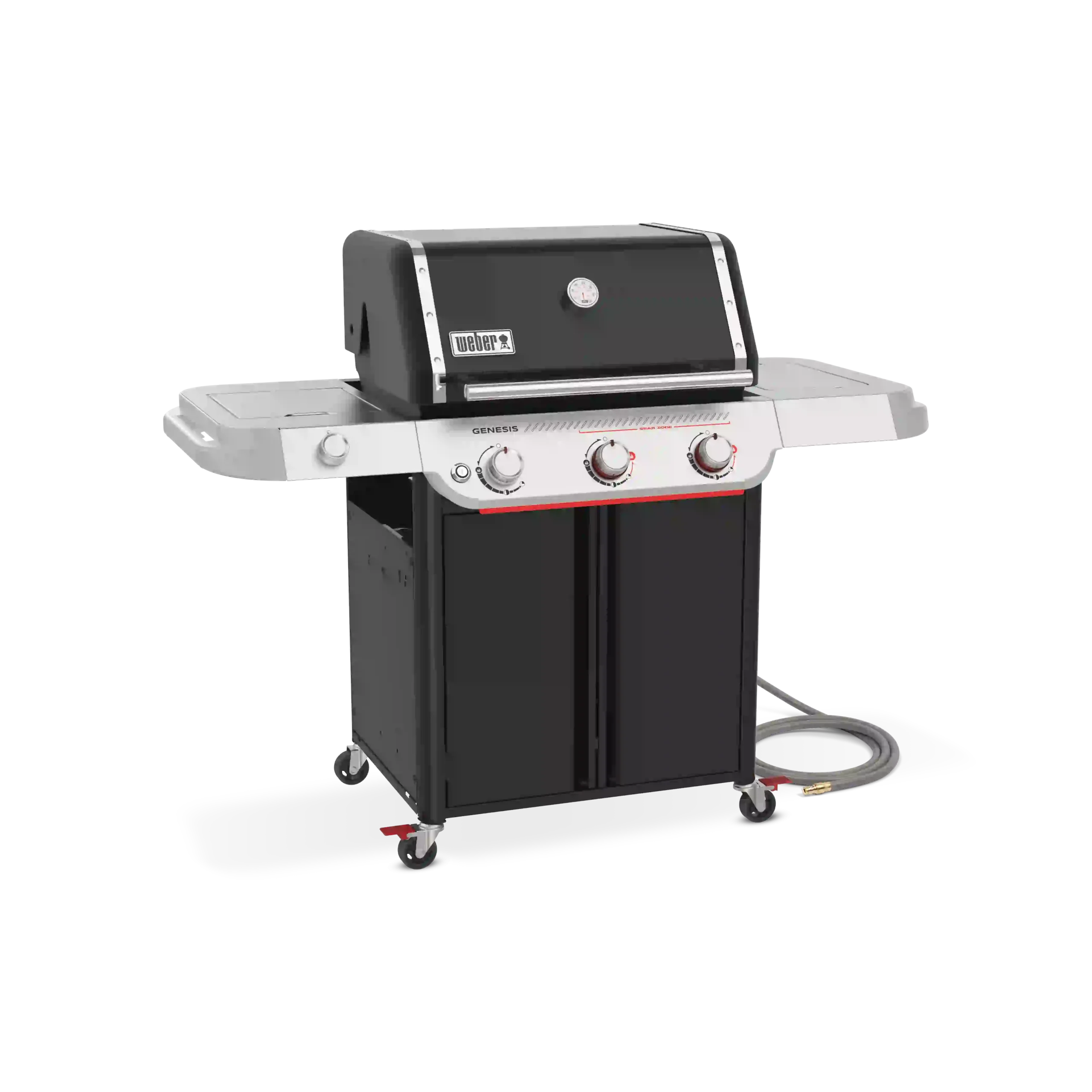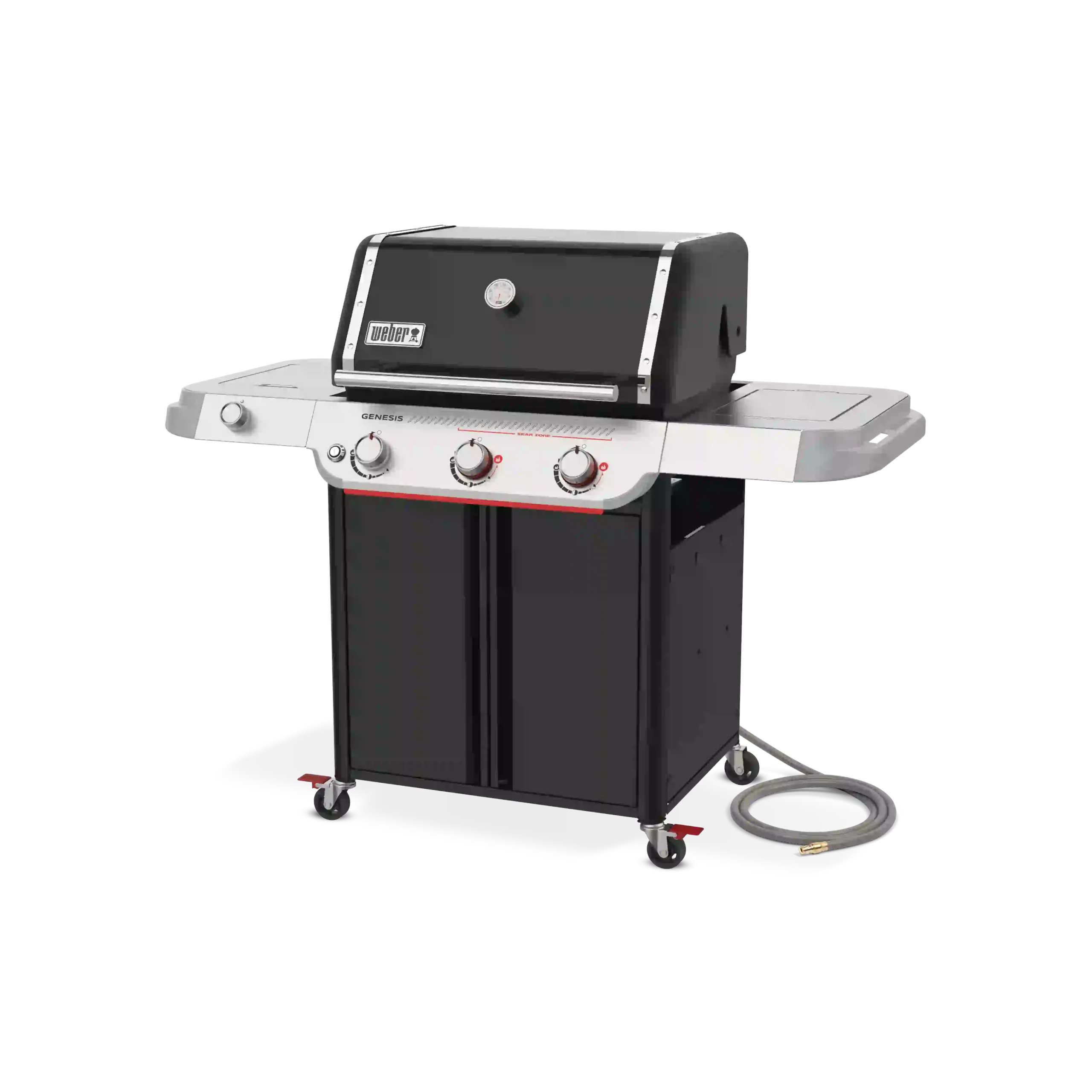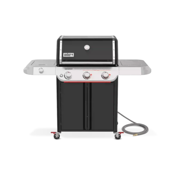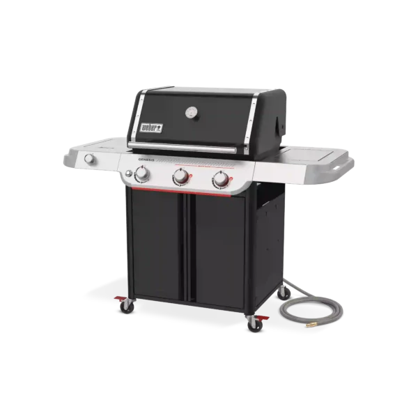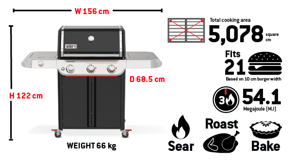 Experience powerhouse performance and precision with the upgraded Weber® Genesis® E-335 Gas Barbecue. This premium 3-burner outdoor entertaining barbecue is perfect for large families or anyone looking for plenty of space, power and cooking versatility. Featuring a Sear Zone, side burner, and Weber Crafted® griddle, it’s sure to be the centrepiece of your backyard. An ultra-hot Sear Zone, powered by two dual-row PureBlu™ burners, reaches ~400ºC for impressive restaurant-quality searing. The spacious cooking area heats up fast and evenly, thanks to the premium PureBlu™ burners. Heavy-duty porcelain-enamelled, cast-iron cooking grills flip over to fit Weber Crafted® cookware, giving you ultimate cooking versatility by transforming your barbecue with a griddle, pizza stone, veggie basket, and more . Plus, with Weber Works™ interchangeable accessories that drop in or snap onto the side tables, you can store, carry, prep, and serve seamlessly.