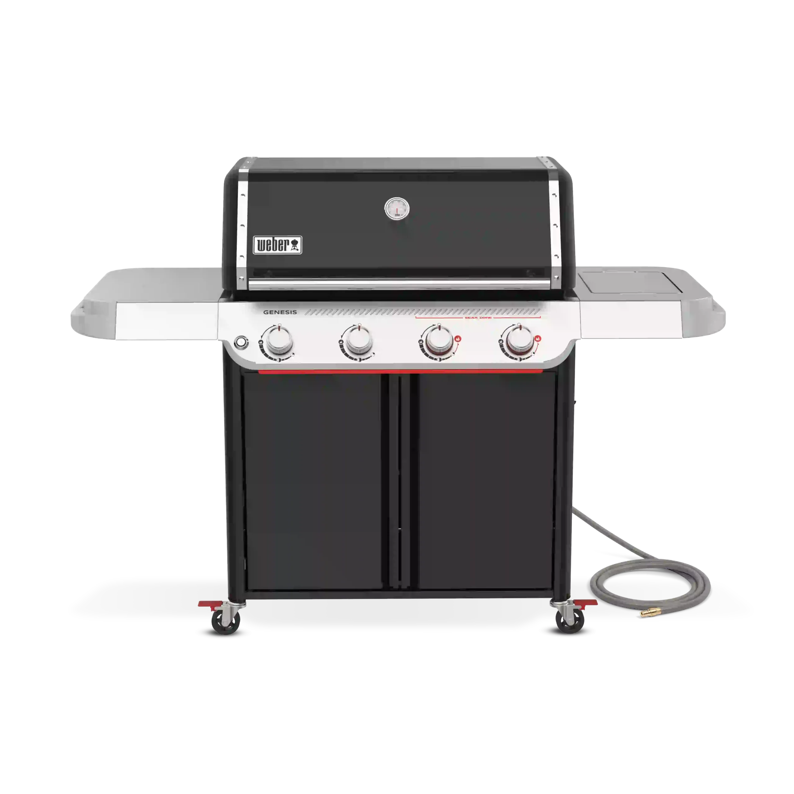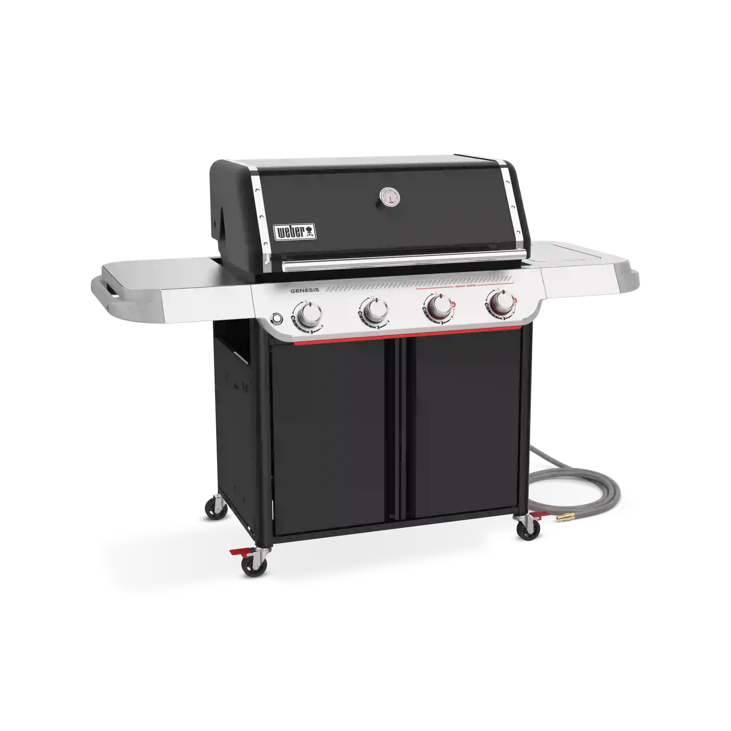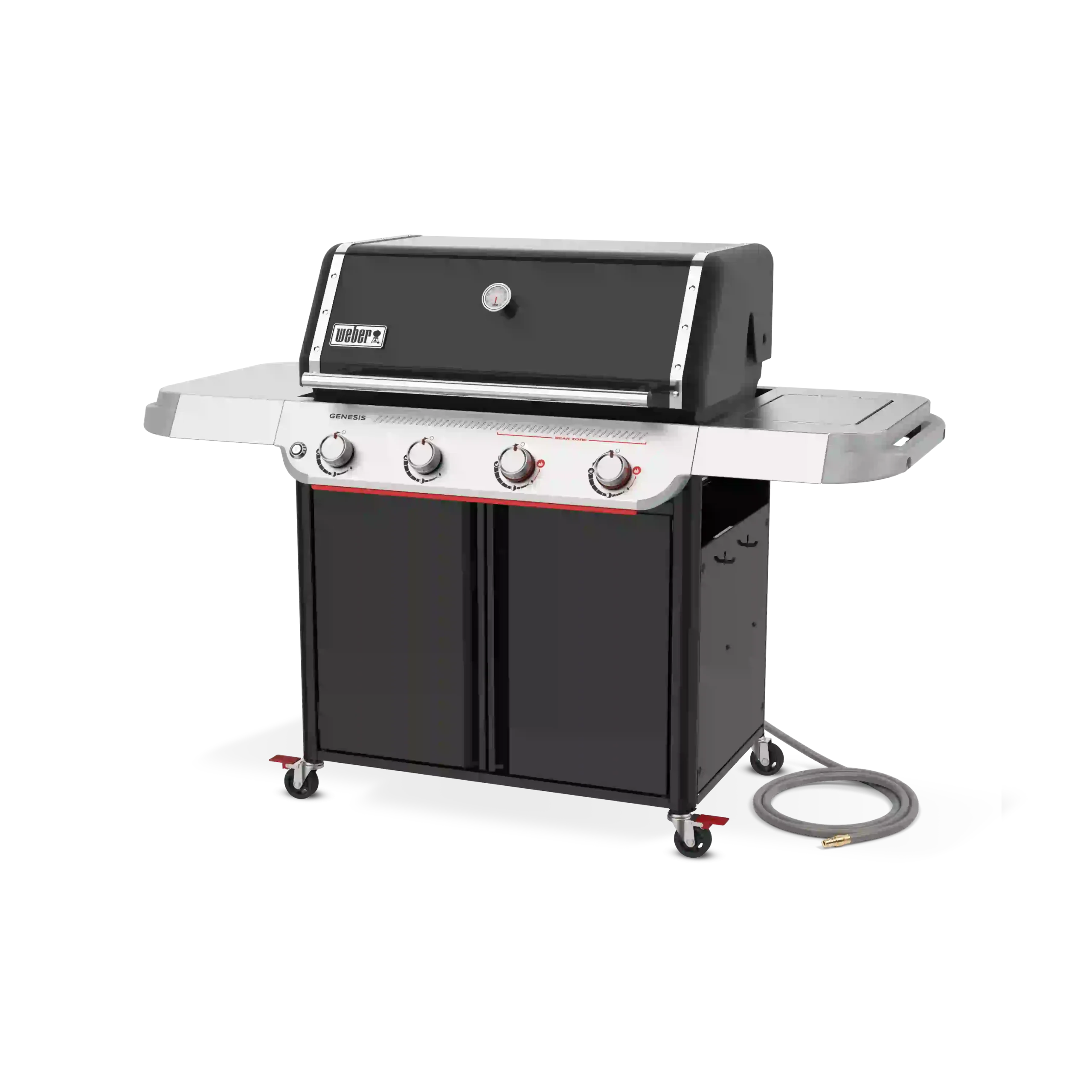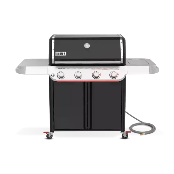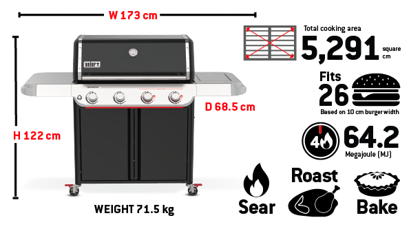 Experience powerhouse performance and precision with the upgraded Weber® Genesis® E-425 Gas Barbecue. This premium 4-burner outdoor entertaining barbecue is perfect for large families or anyone looking for plenty of space, power and cooking versatility. Featuring a Sear Zone and Weber Crafted® griddle, it’s sure to be the centrepiece of your backyard. An ultra-hot Sear Zone, powered by two dual-row PureBlu™ burners, reaches ~400ºC for impressive restaurant-quality searing. The spacious cooking area heats up fast and evenly, thanks to the premium PureBlu™ burners. Heavy-duty porcelain-enamelled, cast-iron cooking grills flip over to fit Weber Crafted® cookware, giving you ultimate cooking versatility by transforming your barbecue with a griddle, pizza stone, veggie basket, and more . Plus, with Weber Works™ interchangeable accessories that drop in or snap onto the side tables, you can store, carry, prep, and serve seamlessly.