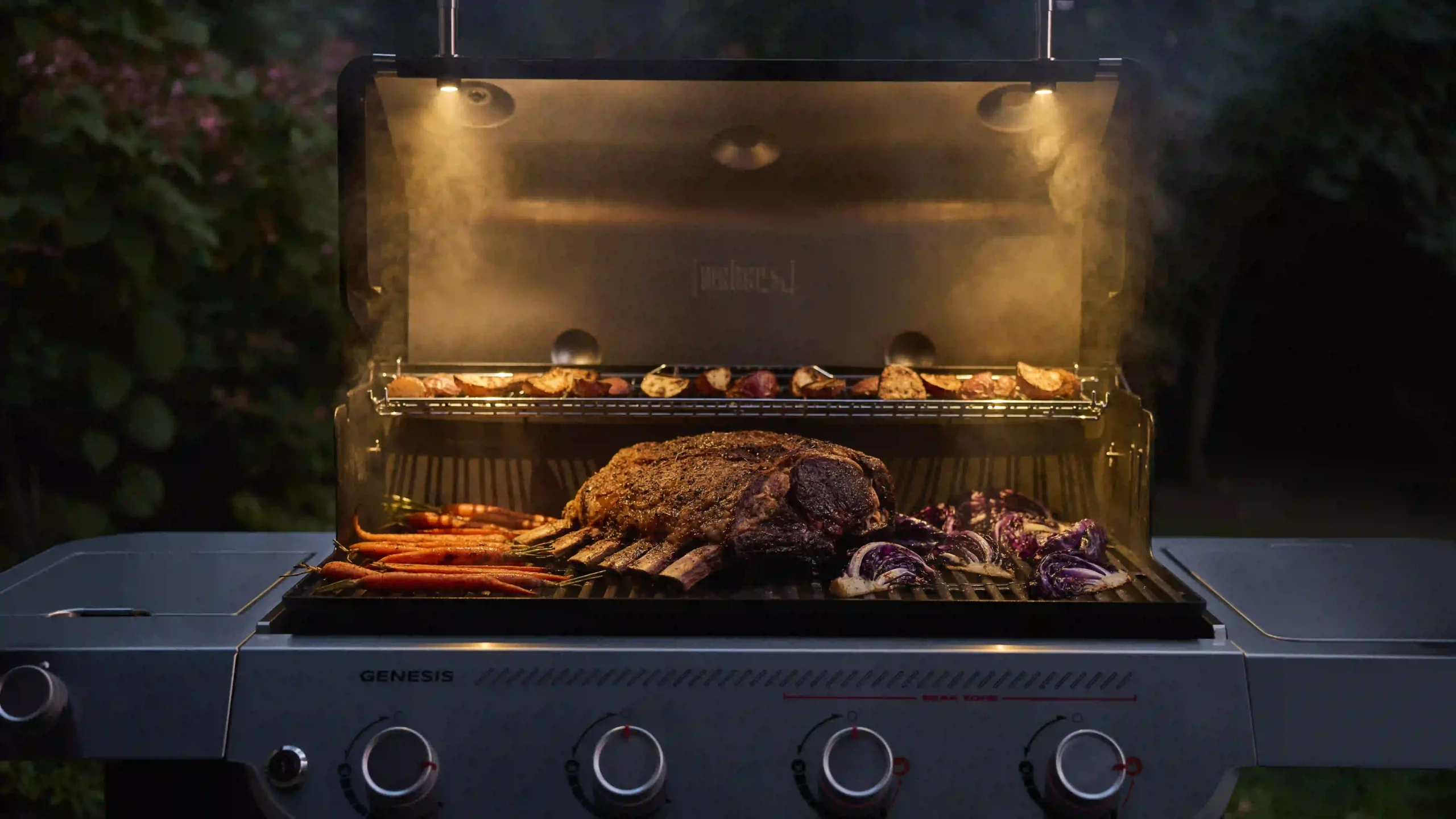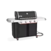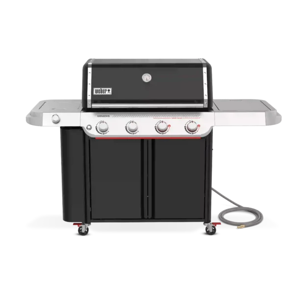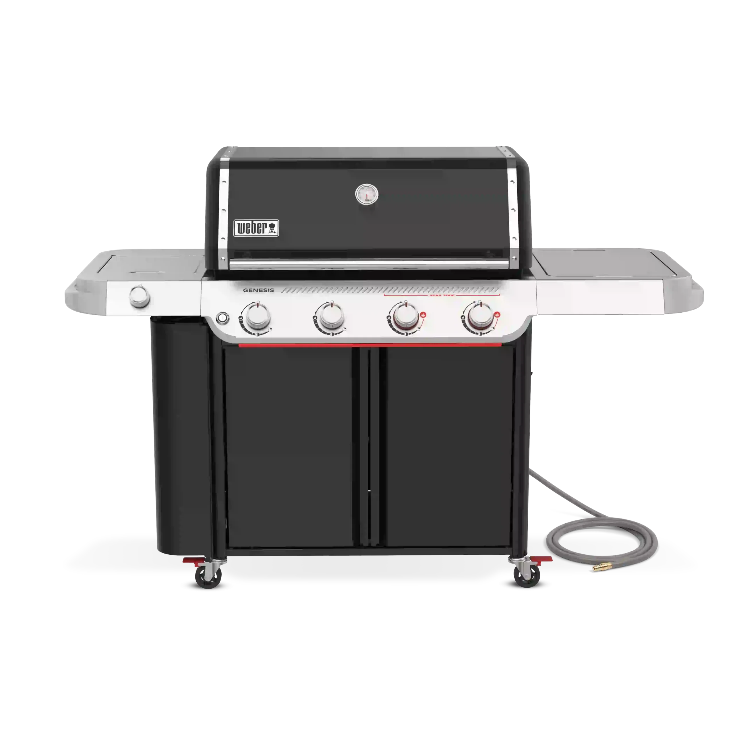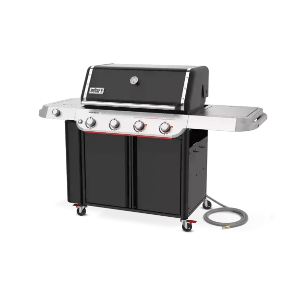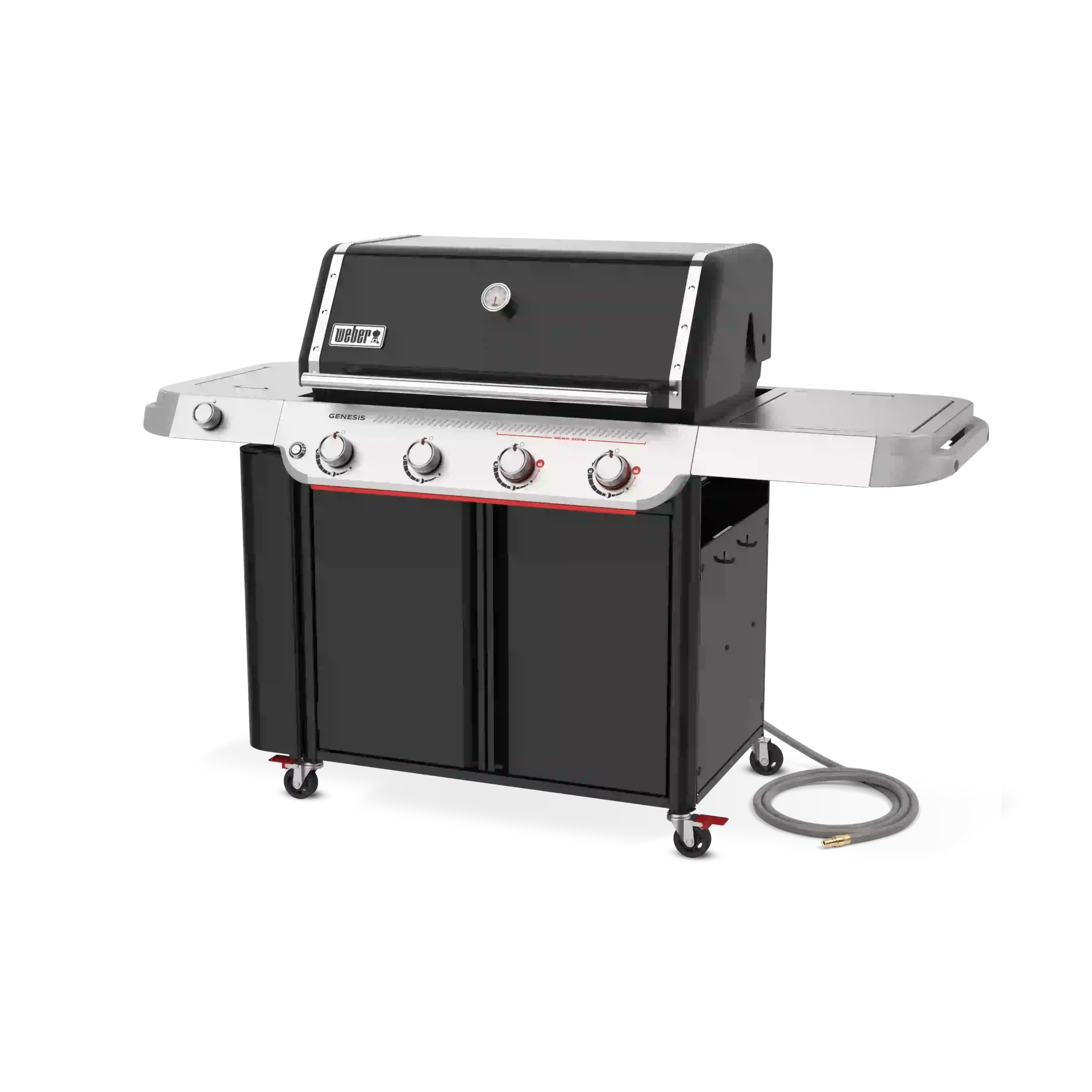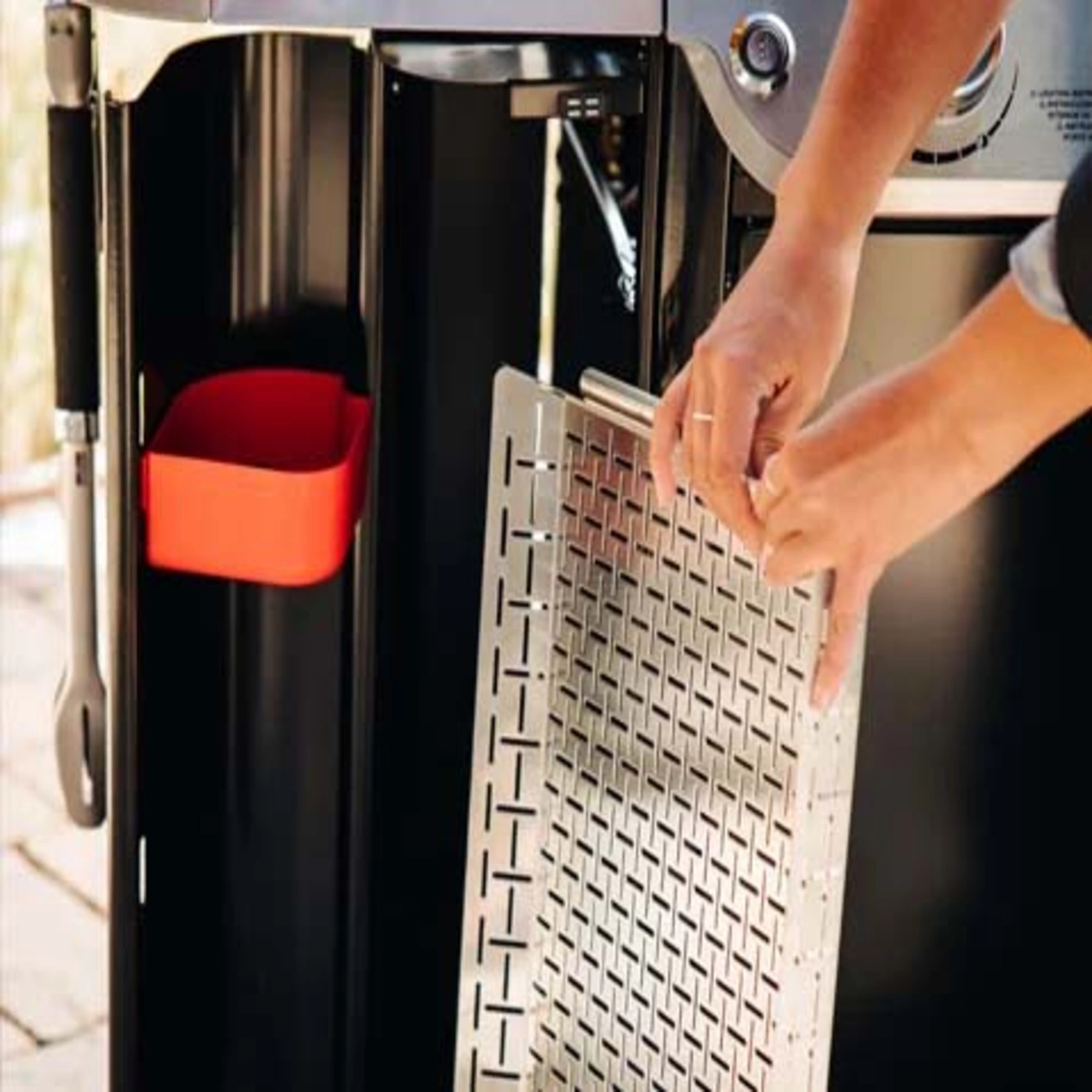 Experience powerhouse performance and precision with the upgraded Weber® Genesis® EP-435 Gas Barbecue. This premium 4-burner outdoor entertaining barbecue is perfect for large families or anyone looking for plenty of space, power and cooking versatility. Featuring a Sear Zone, side burner, grill locker, and Weber Crafted® griddle, it’s sure to be the centrepiece of your backyard. An ultra-hot Sear Zone, powered by two dual-row PureBlu™ burners, reaches ~400ºC for impressive restaurant-quality searing. The spacious cooking area heats up fast and evenly, thanks to the premium PureBlu™ burners. Heavy-duty porcelain-enamelled, cast-iron cooking grills flip over to fit Weber Crafted® cookware, giving you ultimate cooking versatility by transforming your barbecue with a griddle, pizza stone, veggie basket, and more . Plus, with Weber Works™ interchangeable accessories that drop in or snap onto the side tables, you can store, carry, prep, and serve seamlessly.
