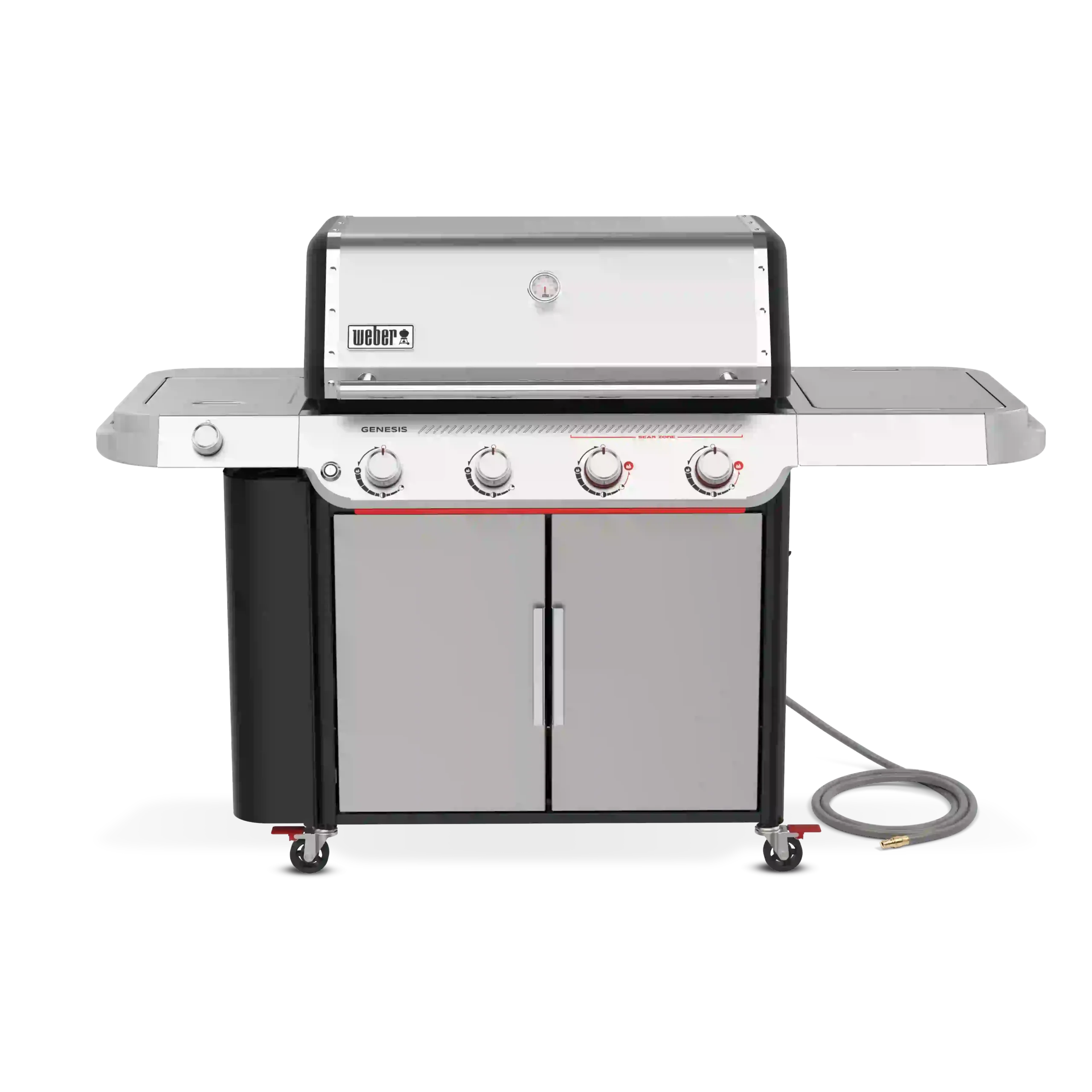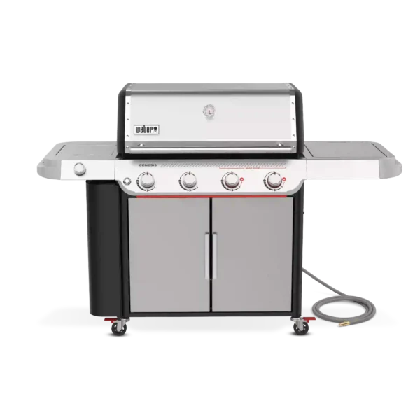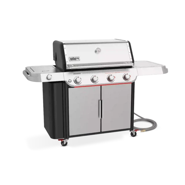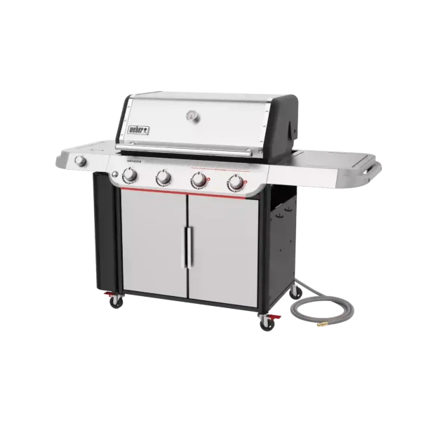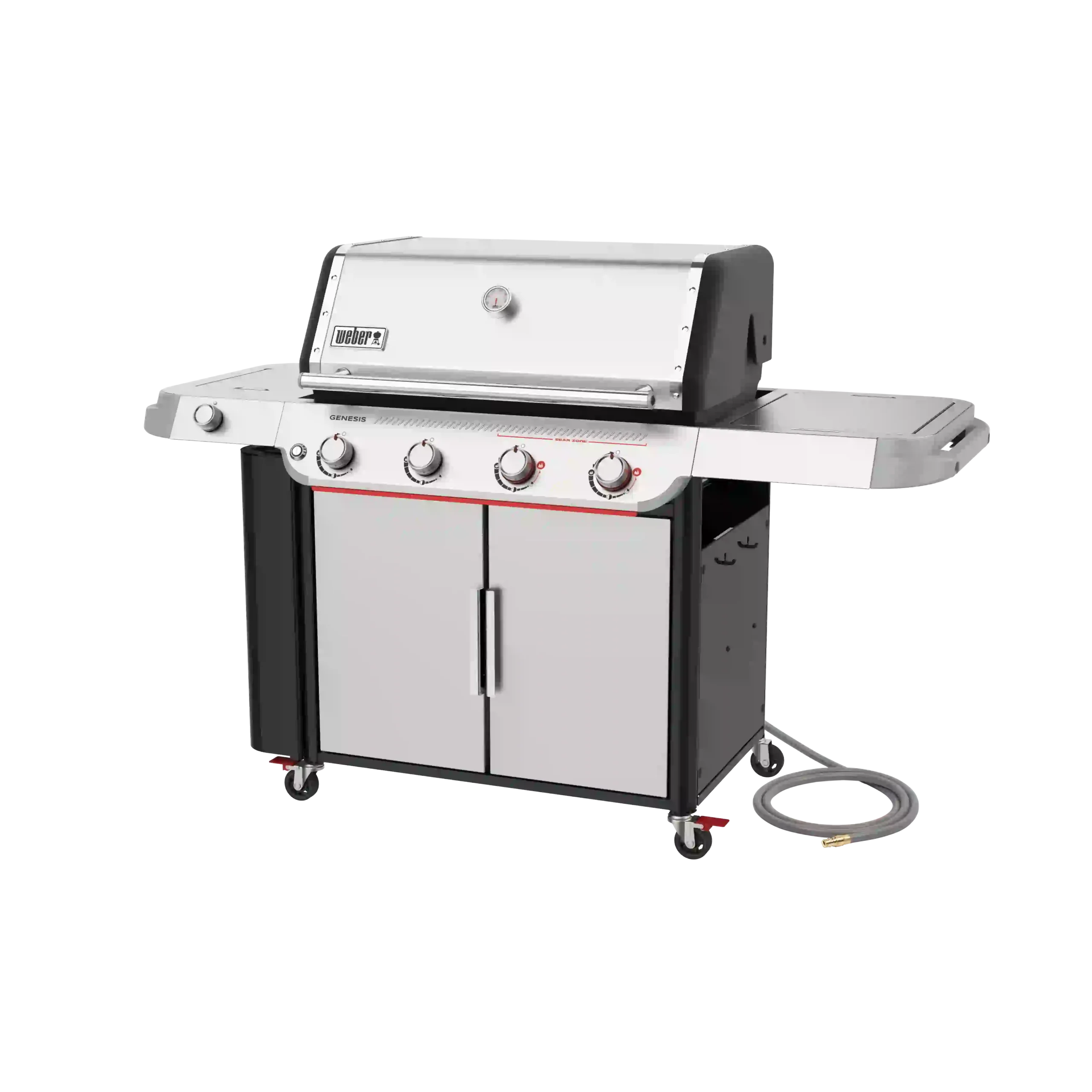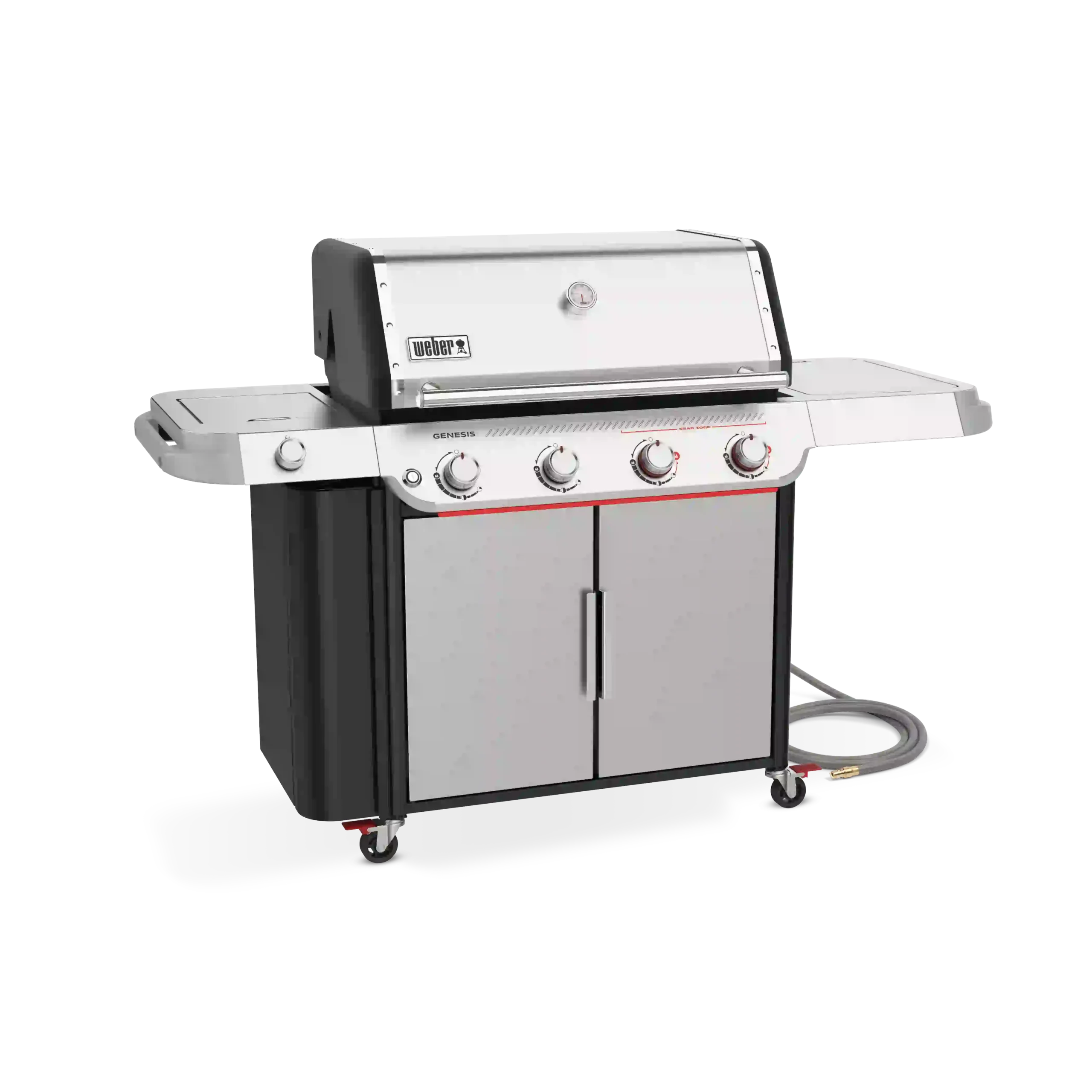 Experience powerhouse performance and precision with the upgraded Weber® Genesis® SP-435 Gas Barbecue. This premium 4-burner outdoor entertaining barbecue is perfect for large families or anyone looking for plenty of space, power and cooking versatility. Featuring a Sear Zone, side burner, grill locker, and Weber Crafted® griddle, it’s sure to be the centrepiece of your backyard. An ultra-hot Sear Zone, powered by two dual-row PureBlu™ burners, reaches ~400ºC for impressive restaurant-quality searing. The spacious cooking area heats up fast and evenly, thanks to the premium PureBlu™ burners. Heavy-duty porcelain-enamelled, cast-iron cooking grills flip over to fit Weber Crafted® cookware, giving you ultimate cooking versatility by transforming your barbecue with a griddle, pizza stone, veggie basket, and more . Plus, with Weber Works™ interchangeable accessories that drop in or snap onto the side tables, you can store, carry, prep, and serve seamlessly.